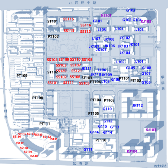 学院路校区学生公寓基础编号以“SS1+现公寓号”标识,基础命名规范为“学生X公寓”、“大运村X公寓”,具体情况如表1所示,位置如图1所示。