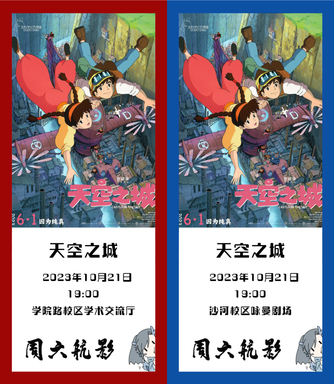 10月21日(周六)19:00,《天空之城》将于学院路校区学术交流厅与沙河校区咏曼剧场同步放映!