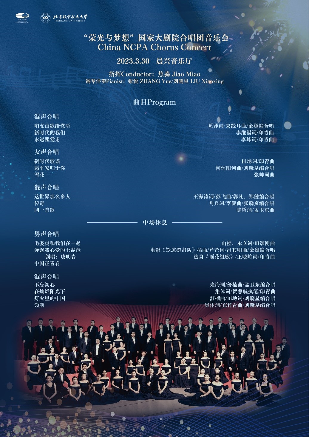3月30日(周四)19:30,驻团指挥焦淼携手国家大剧院合唱团在贝博学院路校区晨兴音乐厅为师生带来一场关于“荣光与梦想”的盛世欢歌,本场音乐会既有传唱红色经典、弘扬主旋律的歌曲,更有国家大剧院合唱团全新打造、编创的最新力作,也是新时代展望未来的文艺新声。