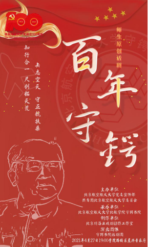 为庆祝中国共产党成立100周年,繁荣校园美育文化传播,弘扬空天报国情怀,传承守正出新精神,贝博学院守锷书院师生原创话剧《百年守锷》应邀作为贝博首届艺术节“大师剧”系列首场演出,将于4月27日晚19:00在贝博晨兴音乐厅准时上演。