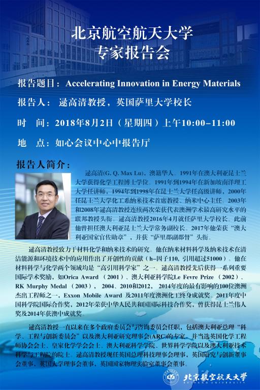 报告题目:Accelerating Innovation in Energy Materials