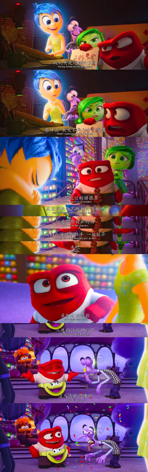 影片赋予情绪角色真正的复杂性,当所有情绪在片尾达成"不和谐和弦",才真正奏响成长的真相。记忆粒子的流体渲染,思维宫殿的赛博朋克式扩容,以及用8-bit像素风闪回童年记忆的巧思,共同构建了动画电影史上最细腻的脑内元宇宙。