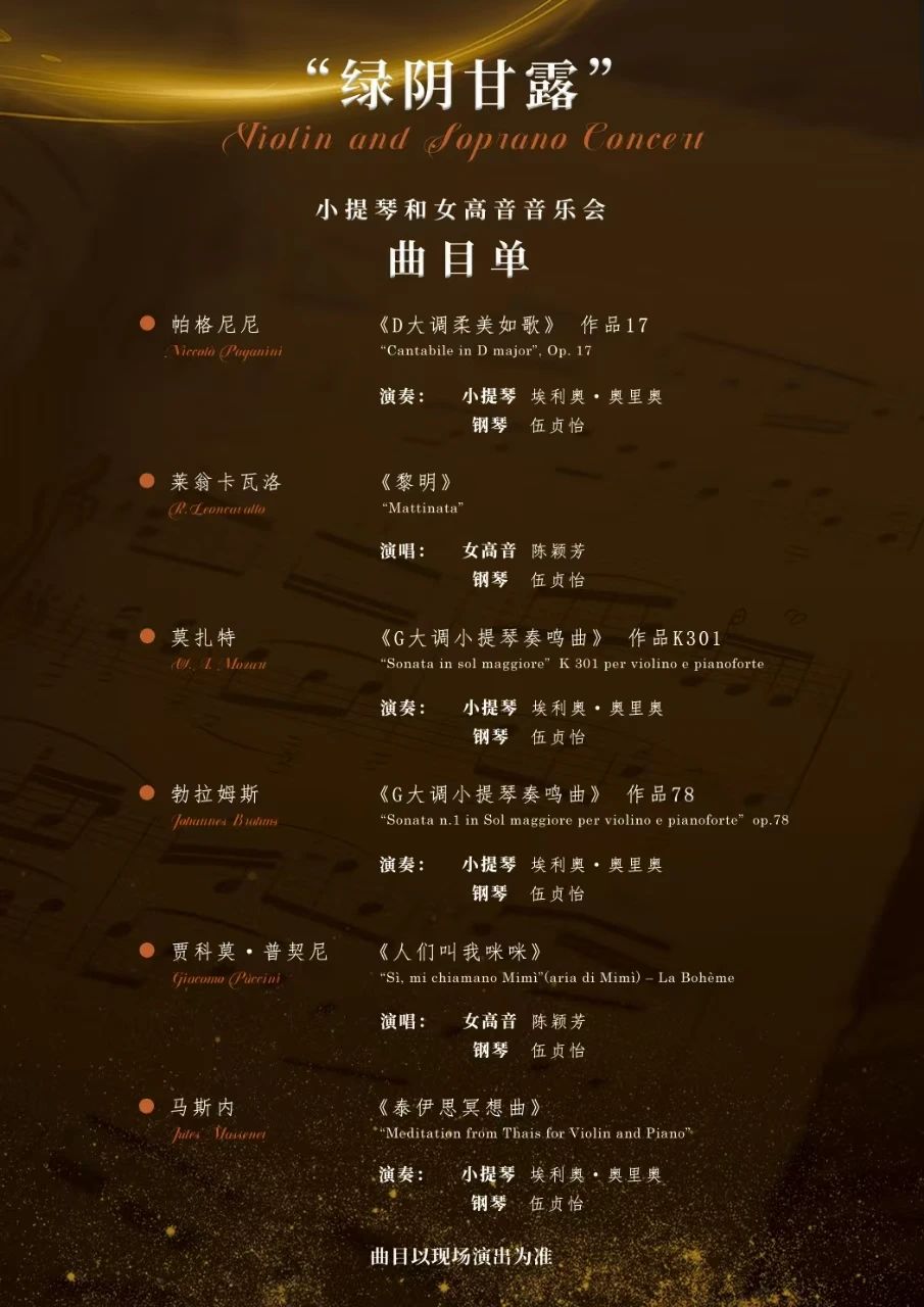 Elio Orio,意大利帕多瓦国立音乐学院院长,小提琴教授。最初在阿斯蒂当地的音乐学校学习音乐,并在那里担任了近20年的小提琴教师。在获得小提琴学位之前,他已开始为意大利一些最重要的国家管弦乐团工作,如RAI意大利国家电视台,热那亚“Carlo Felice”剧院,罗马歌剧院,都灵皇家歌剧院等。他致力于室内音乐的研究,并创立了雅典娜钢琴四重奏。经常举办个人音乐会,并在多个意大利乐团中担任首席小提琴手。创立了阿斯蒂室内乐团。在通过公开选拔考试后,他成为了一名音乐学院老师。