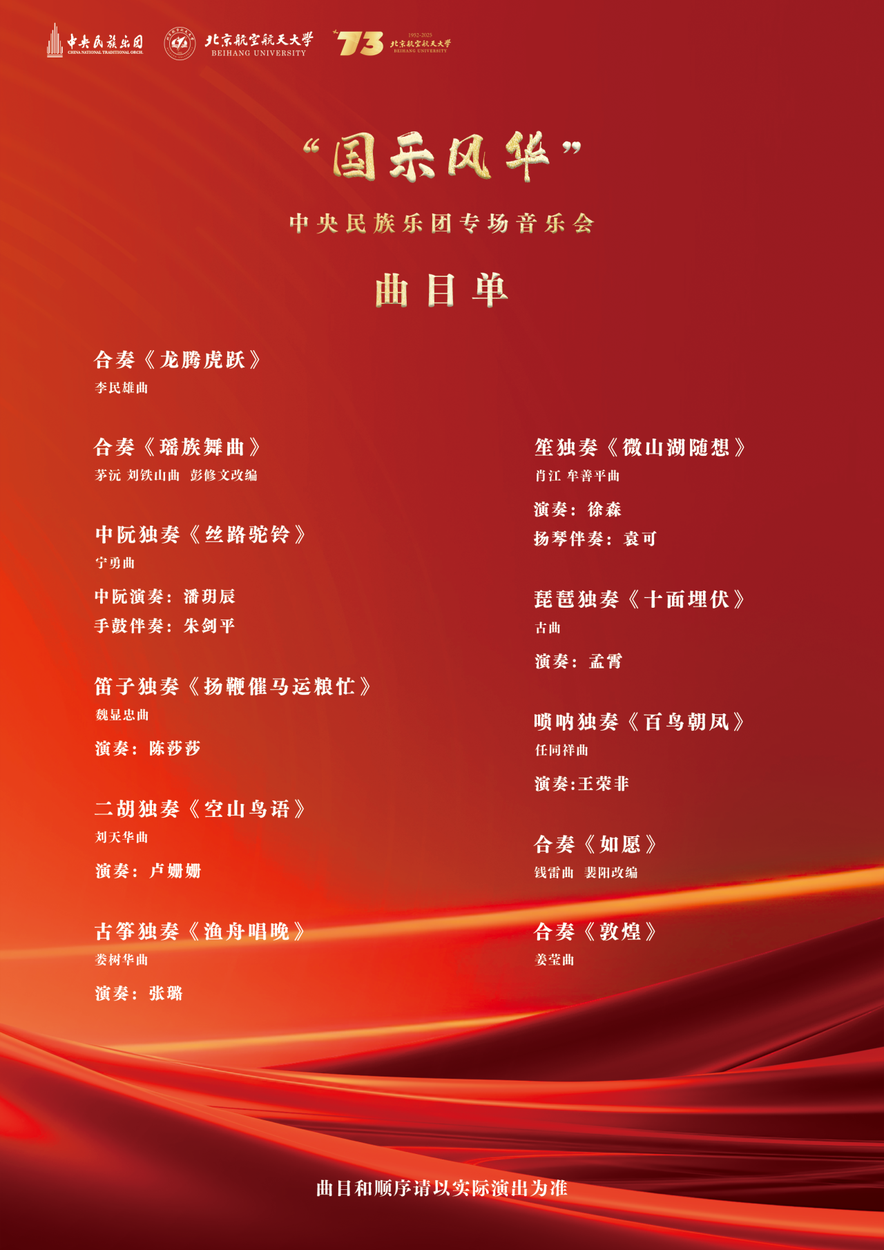 【庆祝ballbet贝博艾弗森官网建校73周年系列活动】国乐风华中央民族乐团专场音乐会