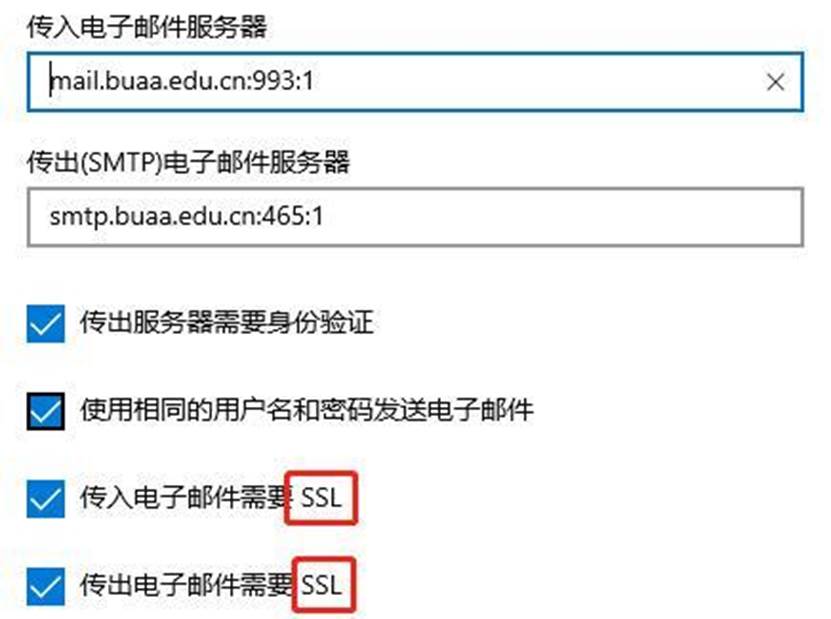 5.如使用邮箱客户端(如Outlook和Foxmail等),需使用加密连接方式。可在“帐户设置”中进行如下勾选: