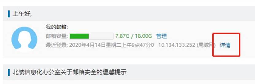 4.时常关注邮箱的登录详情(包括登录时间、IP地址、登录方式和登录状态),一旦发现异常,应当及时更改密码。