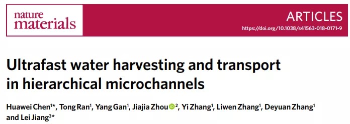 2016年4月7日,我校机械工程与自动化学院陈华伟教授及其团队的研究成果《Continuous directional water transport on the peristome surface of Nepenthes alata》在《Nature》杂志上发表,这是我国机械工程领域在该杂志的首篇论文。两年后的2018年9月24日,陈华伟教授课题组的又一成果《Ultrafast water harvesting and transport in hierarchical micro-channels》在线发表在《Nature Materials》上。陈华伟教授表示“我们要有信心,在机械工程领域开辟出一块独特的天地,瞄准世界领先水平。”如他所言,课题组的科研成果短短两年间,两度刊登在全球顶级学术刊物上,充分体现了他在多学科交叉前沿研究领域不断探索的决心。