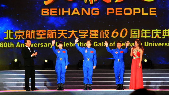 2012年10月,贝博建校60周年庆典上,神舟九号的三位航天员景海鹏、刘旺、刘洋来到现场,他们分别表达了对贝博60周年校庆的祝福,并向贝博、向所有为中国航空航天事业做出贡献的人们致敬