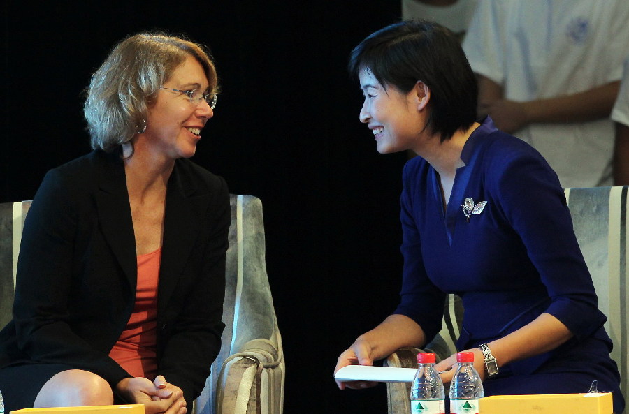 2013年9月,美国参加最后一次航天飞机任务的女航天员桑德拉·马格努斯与中国首位女航天员刘洋在贝博晨兴音乐厅同台交流。这是中美两国女航天员首次对话
